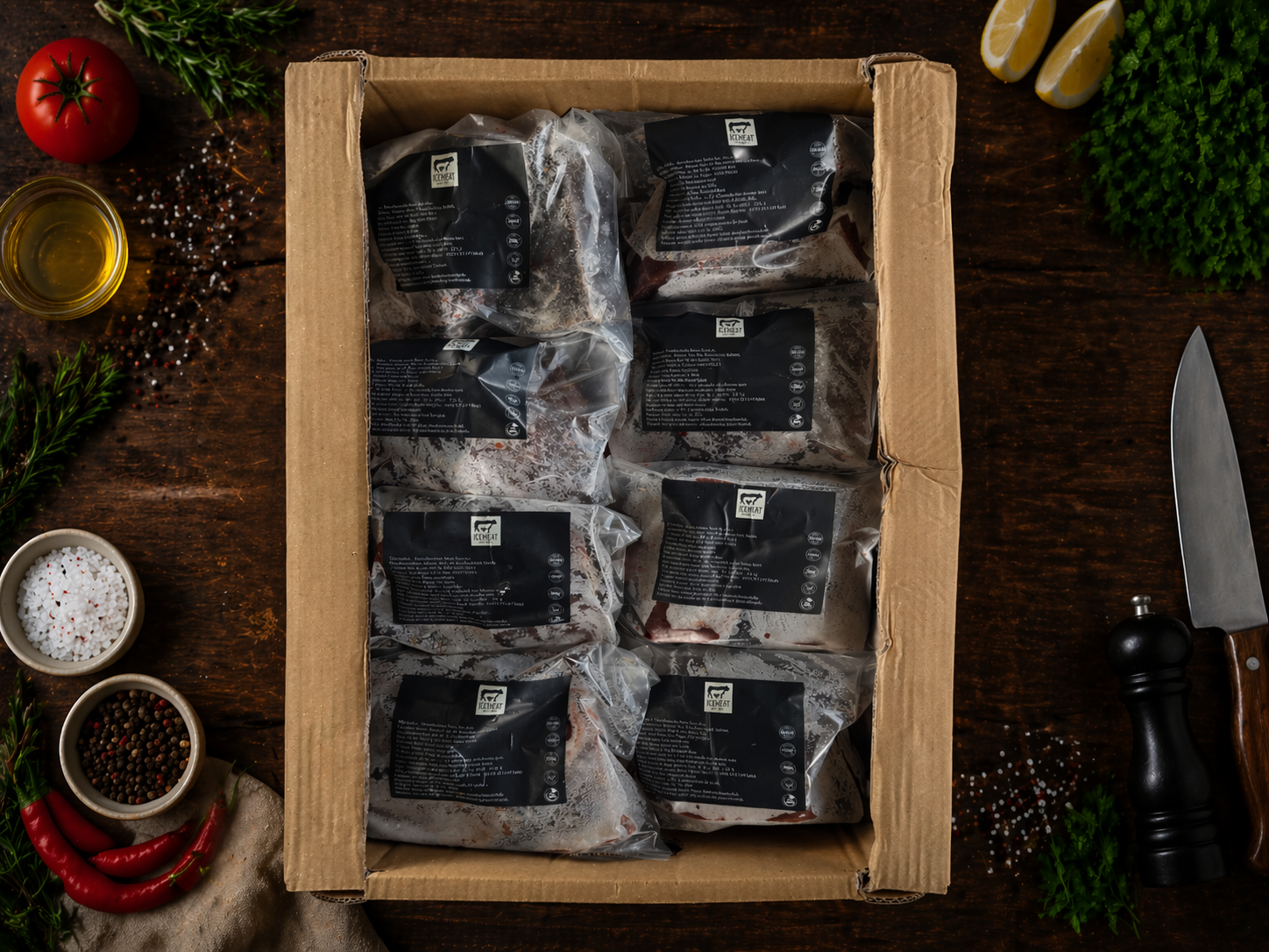 •Composition: Includes various cuts such as shoulder, rack, leg, shank, and neck.