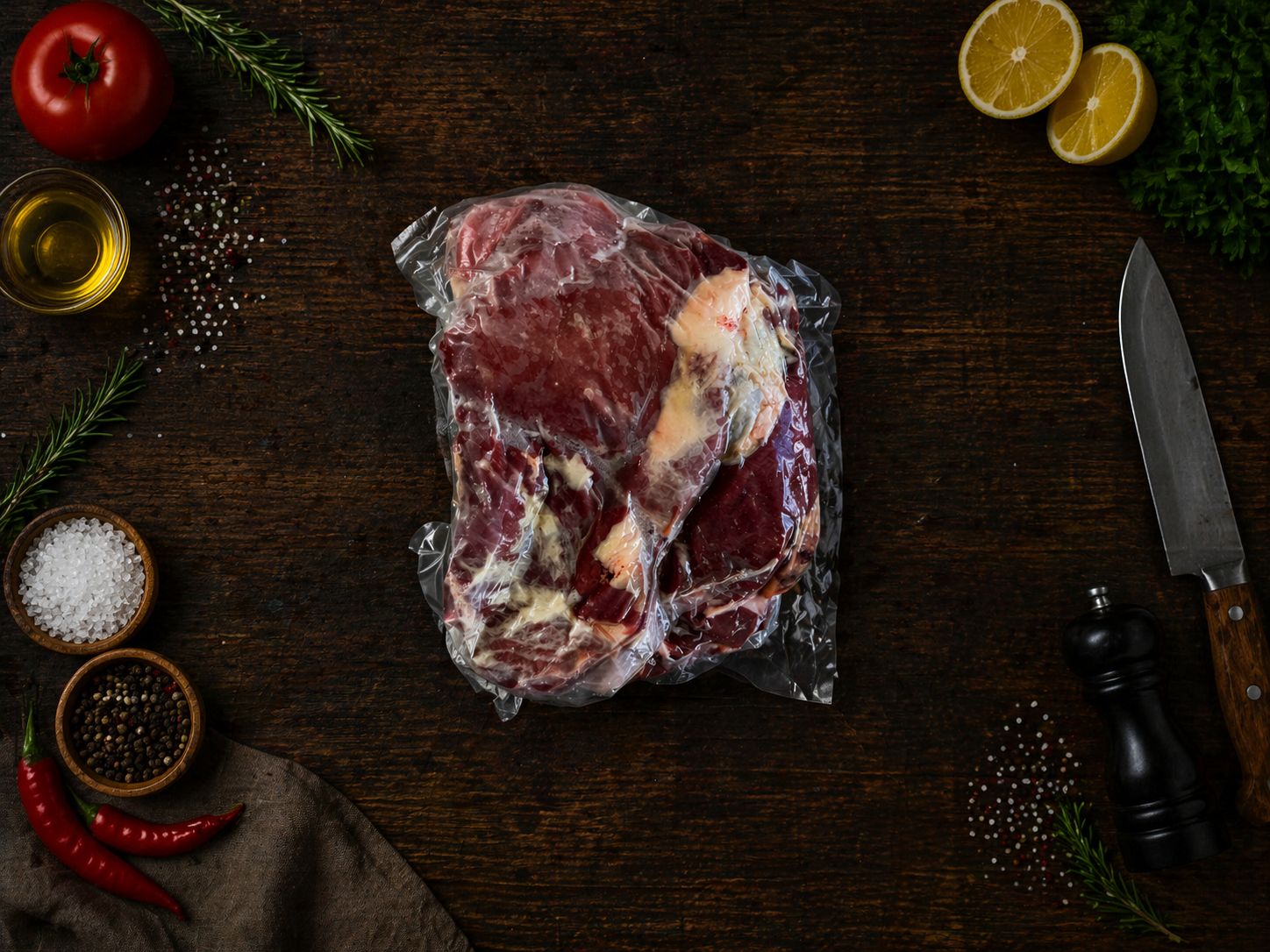 Beef topside is a lean cut from the upper part of the hind leg of the cow. It is a